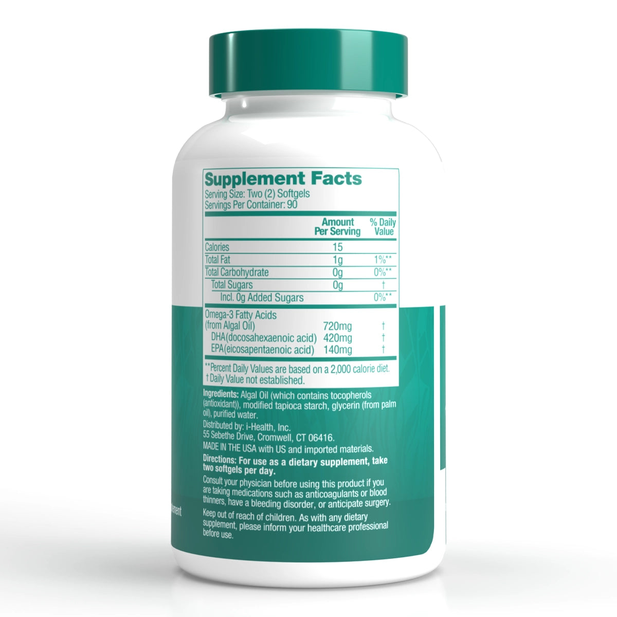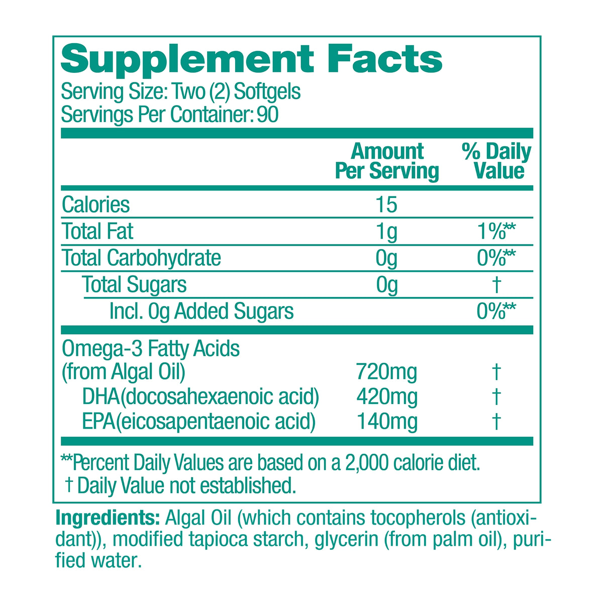 Ovega-3® Softgels are a vegan omega-3 supplement containing both DHA and EPA omega-3 fatty acids to support heart, brain, eye, joint, and overall health.*